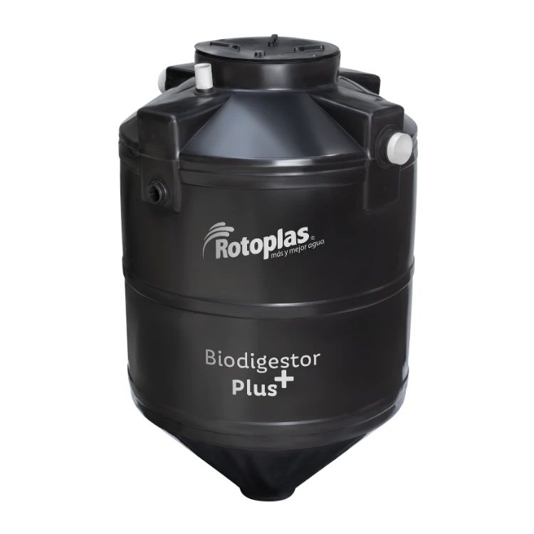 Sistema avanzado de tratamiento primario de agua residual. Gracias a su proceso renovado, incrementa en 25 % la eliminación de contaminantes de las aguas residuales. · Mejora la efectividad de la separación de los contaminantes sólidos mediante un reductor de turbulencia con diseño exclusivo Rotoplas que minimiza la velocidad y fuerza de la entrada del agua al Biodigestor.
